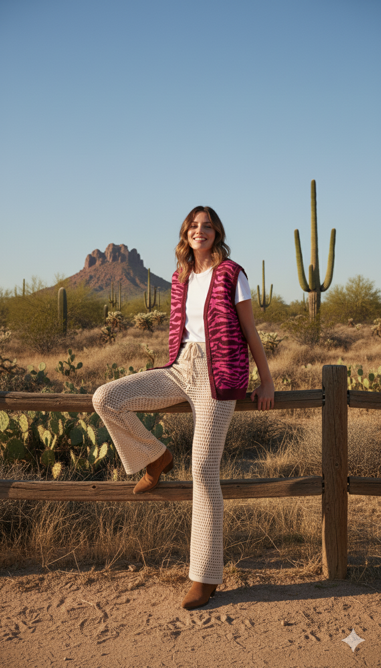 Set chaleco tejido rayas cebra y pantalón tejido con cintura ajustable y cordón.